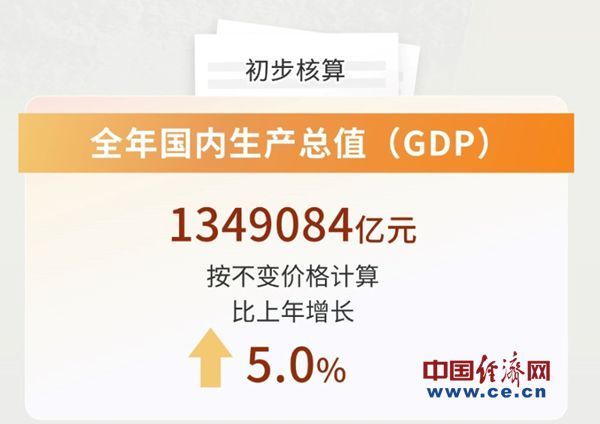 中国经济2024年“成绩单”揭晓。数据显示,初步核算,全年国内生产总值(GDP)达到1349084亿元,按不变价格计算,比上年增长5%。